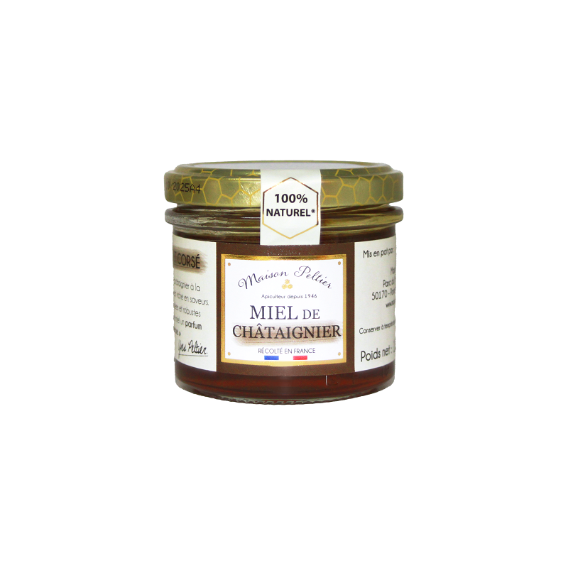 Ce miel de châtaignier à la texture liquide est riche en saveurs. Ses notes boisées et robustes procurent à ce miel un parfum intense.