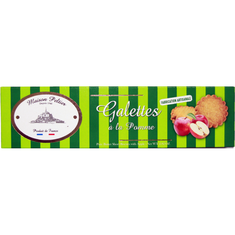 Ingrédients : Farine de BLE française 54%, sucre de France 24%, BEURRE de France 23%, ŒUFS entiers de France 5%, miel de France, pomme en poudre de France 1% (équivalant à 16% de pomme), sel de Guérande, arôme naturel.